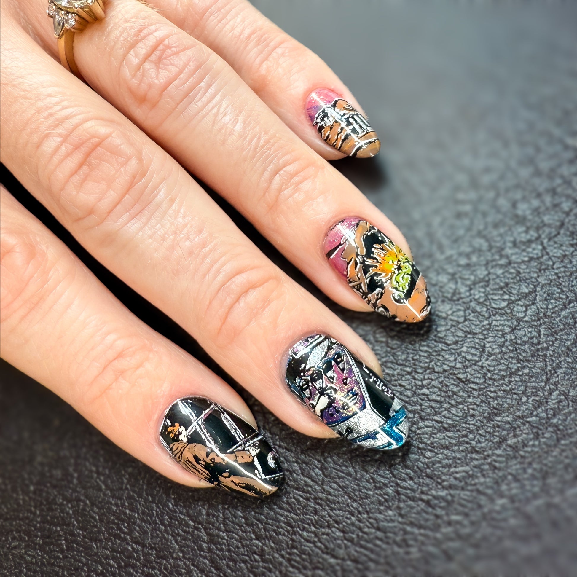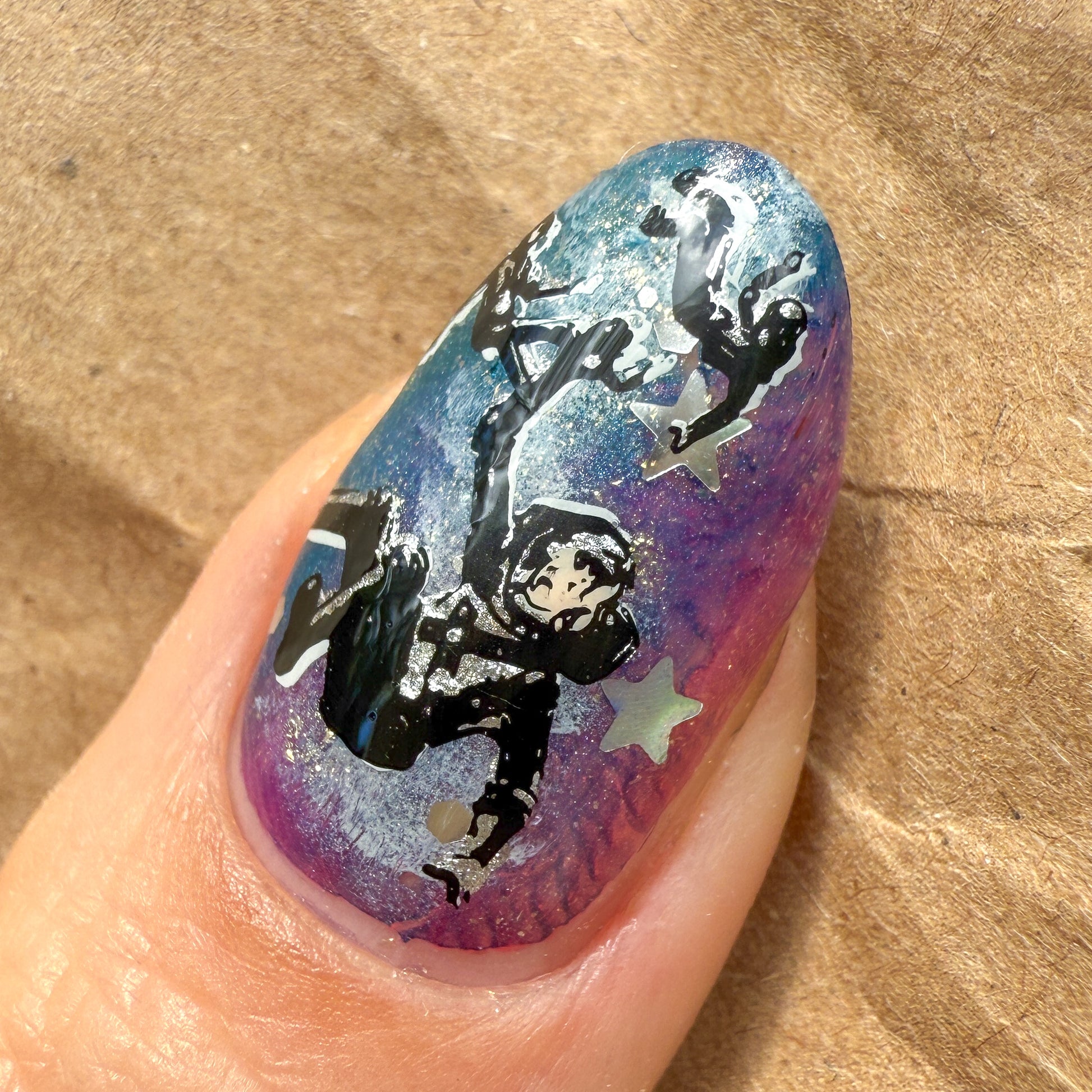 Space Time: A dreamy, surrealist plate that blends celestial bodies, vintage astronomy, and 70s-era sci-fi textures. Think cosmic portals, planetary maps, and a bit of speculative nostalgia — ideal for layered looks or bold standalone impressions.